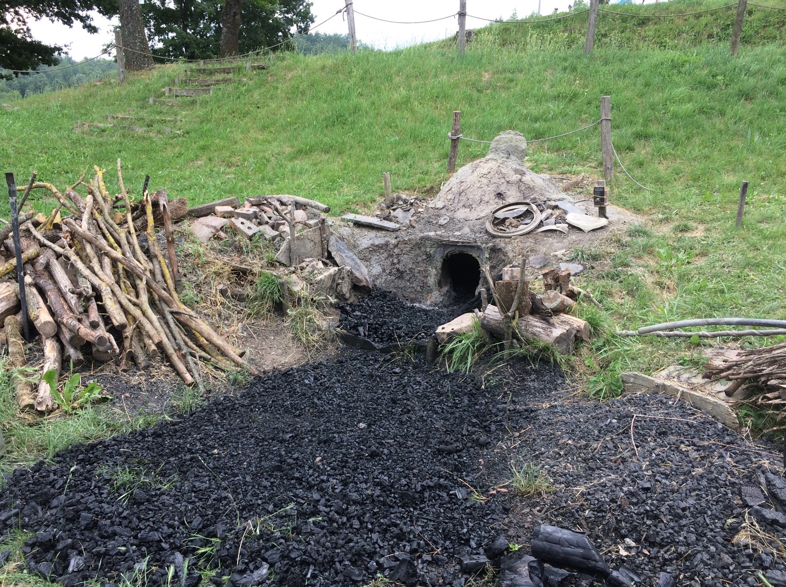 La camera di combustione, incassata sul declivio di una collina, è stata rivestita da mattoni crudi fatti a mano con un impasto di argilla, paglia e sabbia, utilizzando una cassaforma lignea di 25cm di larghezza, 35 cm di lunghezza e 12 cm di spessore, disposti verticalmente creando una “camicia” a contatto con la parete di terra esterna per un migliore isolamento.